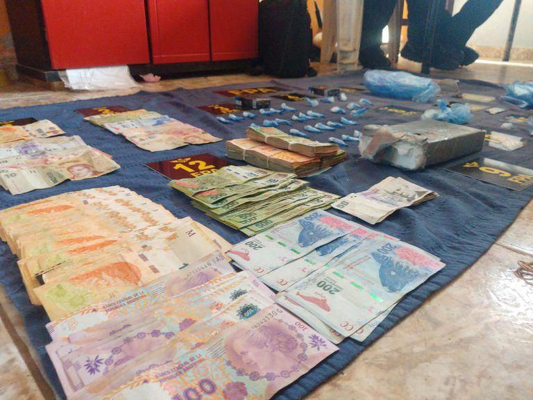 En el lugar fueron detenidos un hombre y una mujer de 61 y 35 años de edad y se incautaron varios envoltorios y un ladrillo que contenía 1,037 kilogramos de cocaína, 505.197 pesos, tres rodados (dos automóviles y un auto) y diferentes elementos presuntamente probatorios relacionados al fraccionamiento y comercialización de las sustancias.
