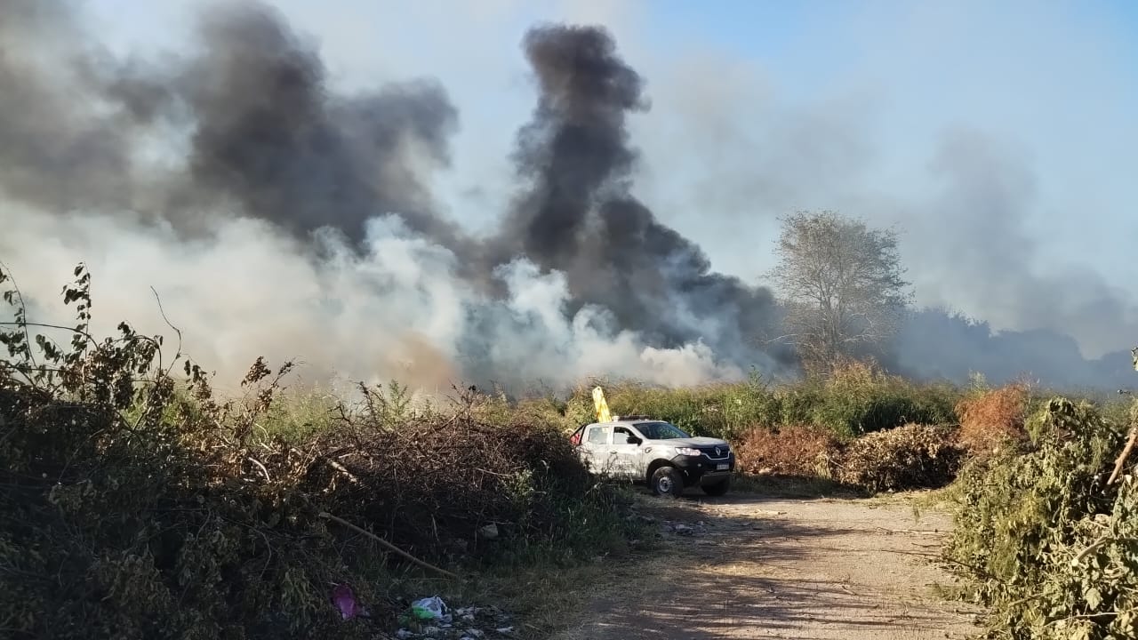 En horas de la tarde, en inmediaciones al cementerio se constato un foco ígneo, de unos 40 mts por 50 mts aprox, quemandose un aproximado de 2 hectareas de maleza y basura.