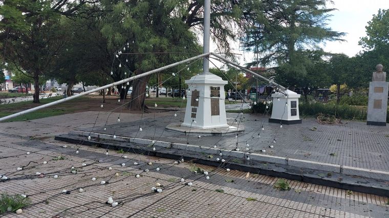 El viento causó voladuras de techos y la caída del mástil de la plaza Rivadavia. Las fuertes ráfagas rompieron vidrieras y causaron numerosos inconvenientes.