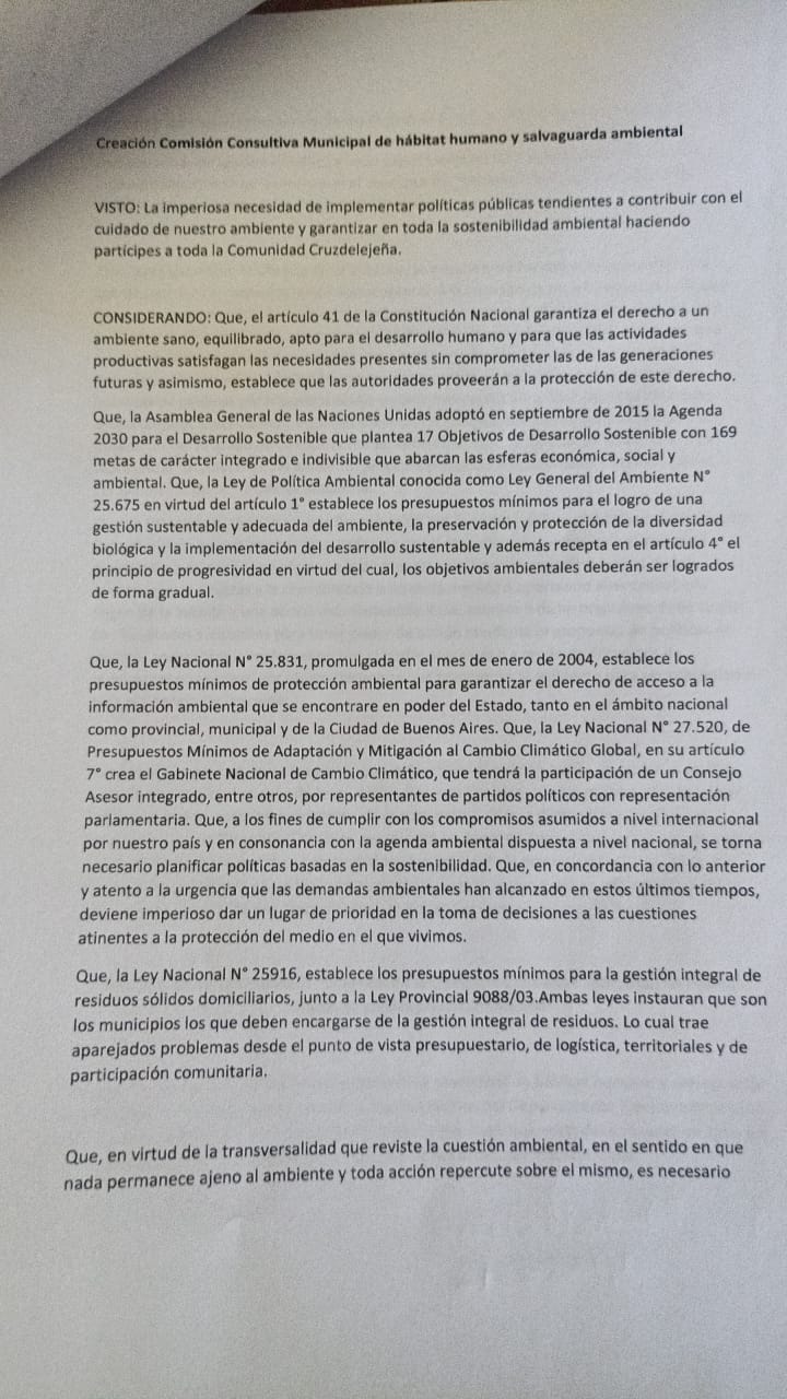 “Este paso es fundamental para que Cruz del Eje cuente con un organismo propio que garantice la sostenibilidad y la participación real de la ciudadanía en la toma de decisiones ambientales”, subrayaron los vecinos.