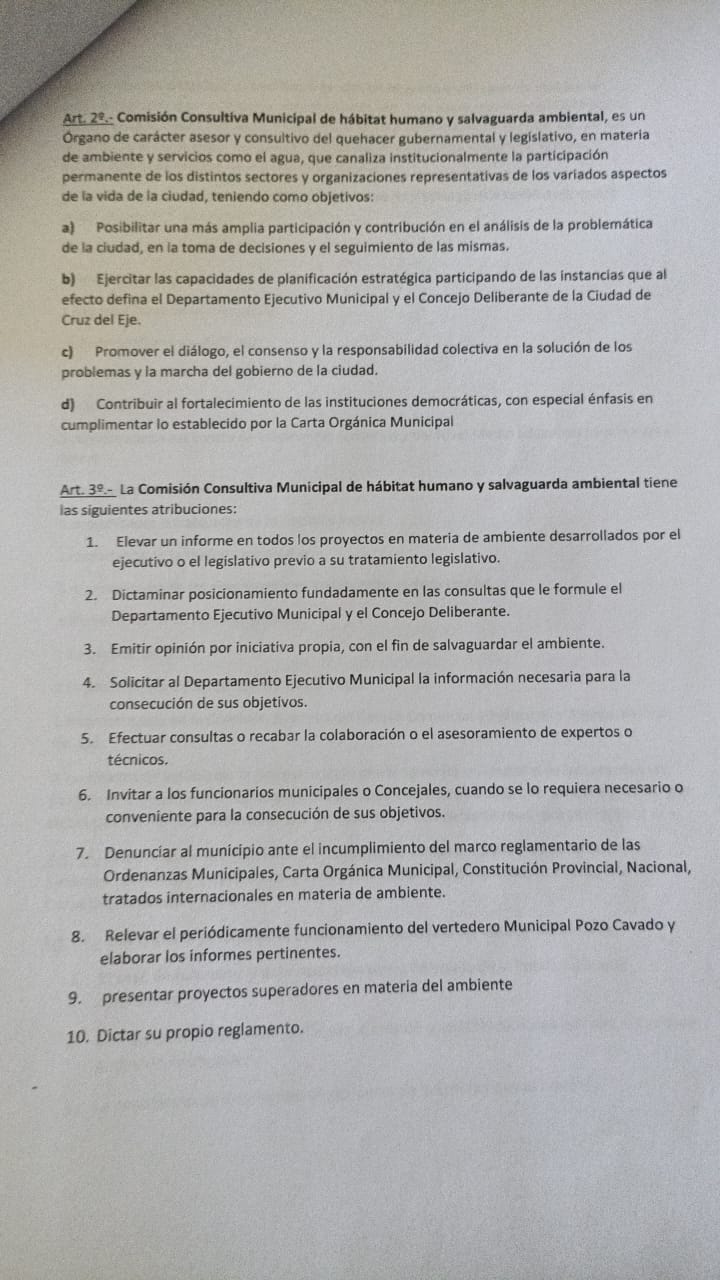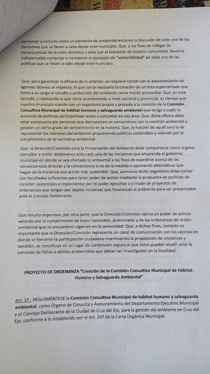 Cruz del Eje. – La Mesa Ambiental Ciudadana junto a vecinos autoconvocados presentaron este 24 de septiembre en el Honorable Concejo Deliberante un proyecto de ordenanza que propone la creación de la Comisión Consultiva Municipal de Hábitat Humano y Salvaguarda Ambiental, un organismo participativo destinado a fortalecer el cuidado del ambiente y garantizar la transparencia en las decisiones públicas relacionadas con la temática.