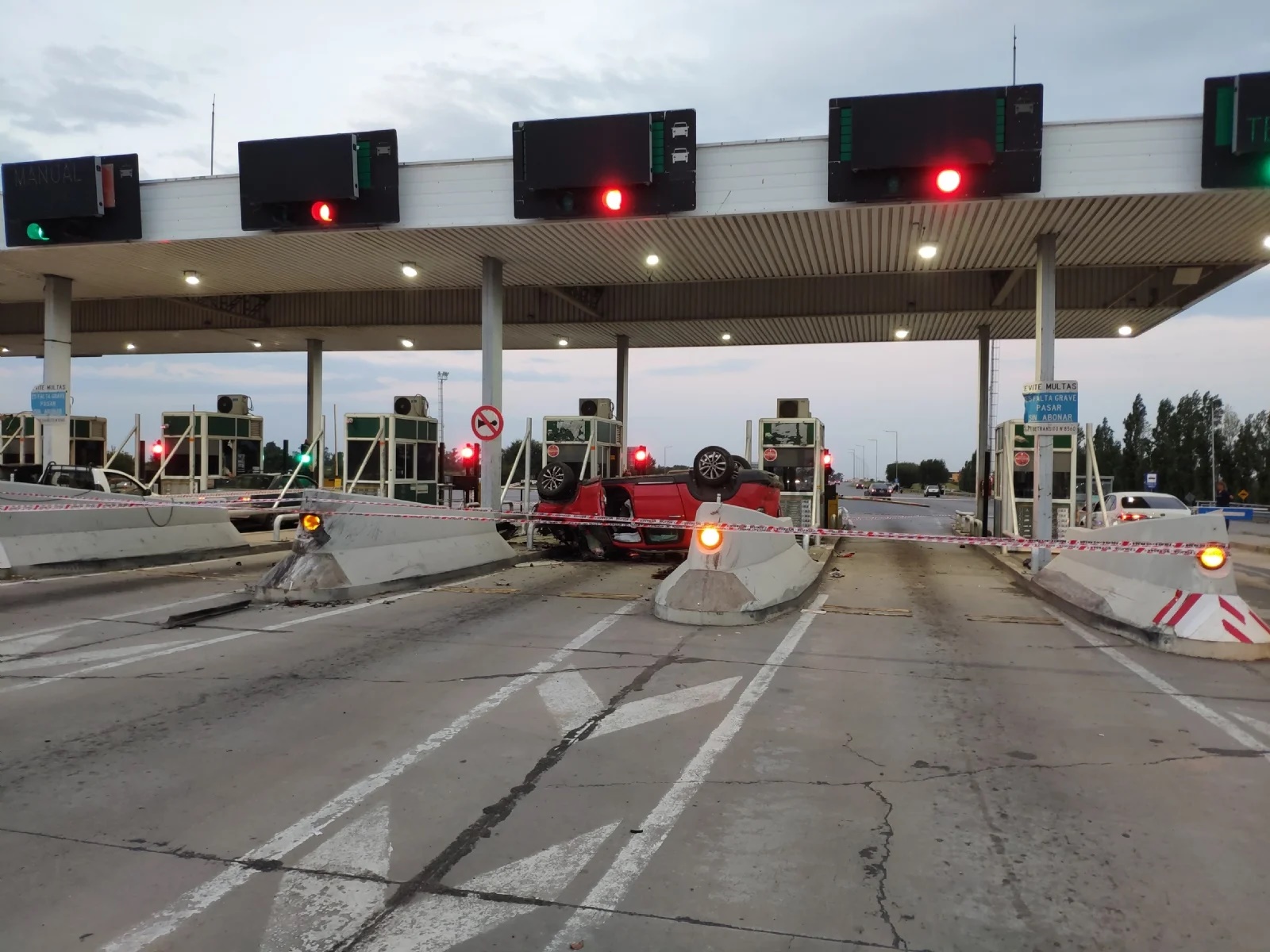 Por causas que buscan determinarse, alrededor de las 17 horas, perdió el control y colisionó contra la estación de peaje.