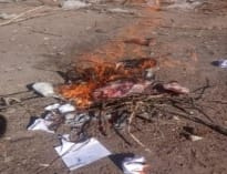 EN EL BASURAL MUNICIPAL SE PROCEDIO A REALIZAR INCINERACIÓN DE ANIMAL CAPRINO, PREVIO EXAMEN REALIZADO POR PERSONAL IDONEO DE BROMATOLOGIA, QUIENES DETERMINARON QUE NO ES APTO PARA EL CONSUMO. COLABORARON EN EL LUGAR PERSONAL POLICIAL.