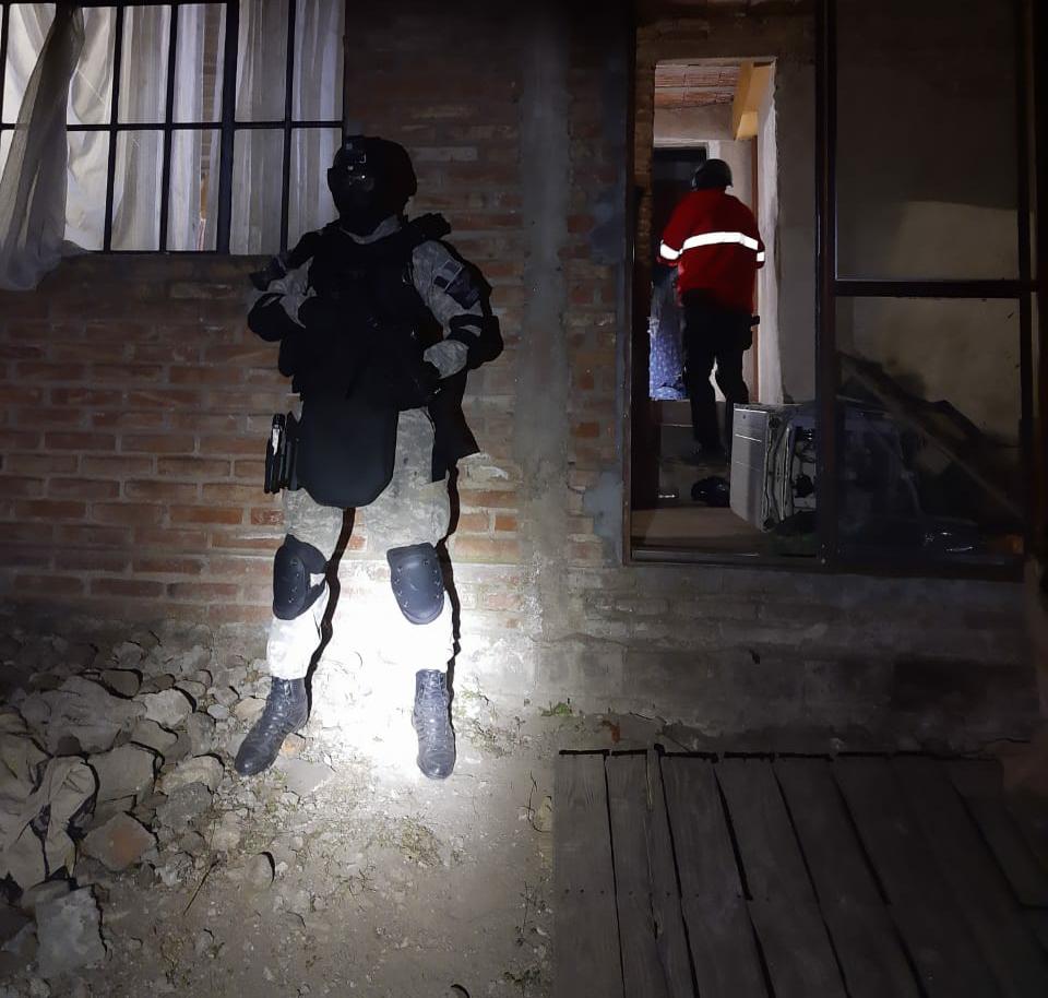 El investigado, de 18 años de edad, fue aprehendido en la calle Palemón Carranza esquina Gerónico. Automáticamente se desarrolló un allanamiento en su vivienda en barrio Las Tunas, sobre calle Esposos Jaime Montoya. Contó con la colaboración de Policía de la Provincia en la seguridad del anillo exterior.
