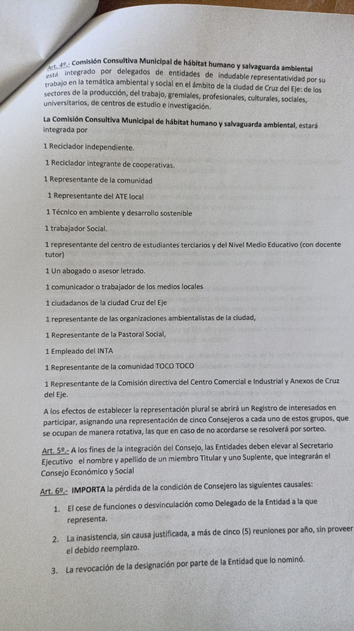 De aprobarse, la Comisión funcionará como órgano de consulta y asesoramiento del Ejecutivo y el Concejo Deliberante. Estará integrada por representantes de distintos sectores: recicladores, organizaciones sociales y ambientalistas, trabajadores, profesionales, estudiantes, comunicadores, instituciones religiosas y productivas, entre otros.